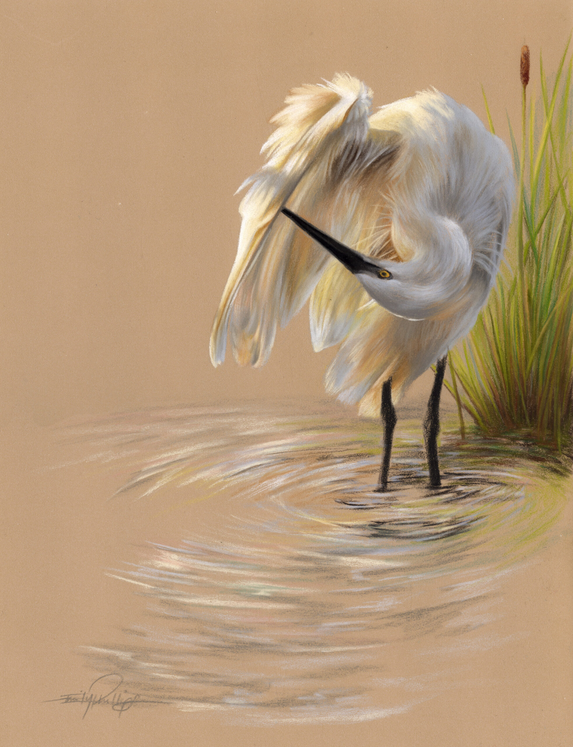 The first example is from an Egret drawing, in pastel pencils, which has a major focus on blue shadows. Creating colours in white fur is always a must, as, without them, it becomes very dull. We will look at the best colours to add in later on. Our next example…